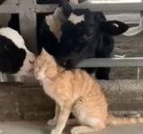 猫が好きでたまらない牛たち…強烈な愛情表現(動画)