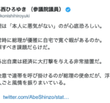 立憲会派・小西洋之氏、安倍首相の動画投稿に「この非常時に総理が優雅に自宅で寛ぐ暇があるのか」「浮き世離れの他人ごと風情。国難だ」