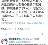 【厚労省】「ヤフー、ネットニュースなどで『補償なき休業要請』との報道…自粛や出勤者7割減は休業補償がないと不可能と報じられているが、正確ではない」