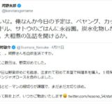 河野太郎「俺なんか今日はペヤング、カップヌードル、サトウのごはんに永谷園。炭水化物しかないな。大和煮の缶詰を開けるか。」