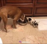 小さな犬が大きな犬からご飯を取り上げた…ほのぼのする方法(動画)