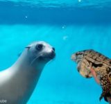 水族館のアシカ、大きなトカゲを見て…目が離せなくなる(動画)