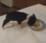 「うちの子犬は…なぜか食事をすると体が伸びていく」(動画)