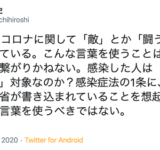 【?】立憲・川内博史「新型コロナに関し『敵』『闘う』という言葉…差別や人権侵害に繋がりかねない」