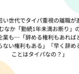 若い世代でタイパ重視の離職が進むなか「勤続1年未満お断り」の企業も…「辞める権利もあればとらない権利もある」「早く辞めることはタイパなの?」