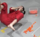 【画像】JCさん、ドミノで失敗してえちえちな格好になってしまう…