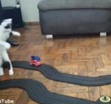猫のアテナちゃん、クルマのおもちゃを見てハイテンションになる(動画)