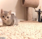 おそるおそる子猫がカメラに近づいてきて…ああっ!?(動画)