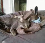 猫ちゃん大好きカンガルー…毛づくろいし合う(動画)