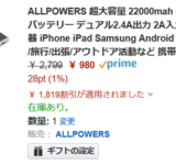 【激安】モバイルバッテリー、USB充電器などが激安!50%OFF以上に!