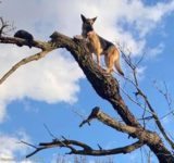 猫を追いかけたジャーマン・シェパード、木から降りられなくなりレスキュー隊に助けられる