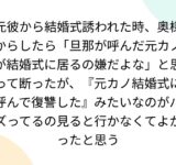 元彼から結婚式誘われた時、奥様からしたら「旦那が呼んだ元カノが結婚式に居るの嫌だよな」と思って断ったが、『元カノ結婚式に呼んで復讐した』みたいなのがバズってるの見ると行かなくてよかったと思う