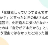 「化粧直しっていつするんですか?」と言ったときのBAさんの返答で、化粧崩れに気づかなかったのは「自分がアホだから」という理由ではなかったと知った話