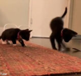 子猫たちが和気あいあいと戦っている相手は…「羽」!(動画)