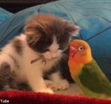 子猫とオウムの微笑ましい関係(動画)