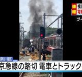 京急線、踏切でトラックと接触して炎上 上下線で運転見合わせ(動画あり)