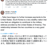 【無慈悲】トランプ大統領「韓国の支払いをさらに増やすための交渉が始まった。韓国は裕福だし米韓関係は良好だ!」 ムンちゃんどーすんの?