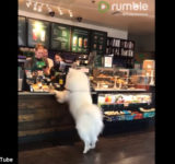 ひとりでコーヒーを買いにきた犬が…ちゃんと列に並んでる!(動画)