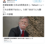 【朝日新聞独自】米軍駐留費「日本は5倍負担を」ボルトン氏が来日時に ⇒ 佐藤正久外務副大臣「事実ではない。あまりにも酷い。全くの誤報」