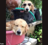 涼む3匹の犬…こんなにカワイイ噴水を見たことない!(動画)