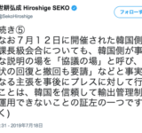 【一度整理します】世耕経産相Twitter「『事務的説明』を『協議」』と呼び、『撤回も要請』と事実と異なる主張…輸出管理上、信頼できない証左の1つ」 【対韓輸出優遇除外】