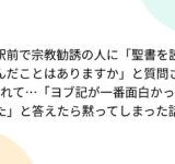 駅前で宗教勧誘の人に「聖書を読んだことはありますか」と質問されて…「ヨブ記が一番面白かった」と答えたら黙ってしまった話