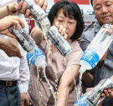 【お買い上げ】 ソウルの日本大使館前で日本製ビールやポカリをぶちまけるデモが行われる