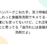 ハンバーグこねた手、洗う時毎回しれっと食器用洗剤でキメてる…誰にも言ってないけど、これ正解だと思ってる「油汚れには食器用洗剤だよ」