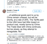 【トランプ大統領】米、対中関税10%から25%に引き上げ ツイッターで表明