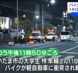 バイクに車が衝突、男性を1キロも引きずったあとに逃走 → バイクに乗っていた大学生が死亡