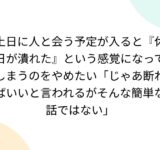 土日に人と会う予定が入ると『休日が潰れた』という感覚になってしまうのをやめたい「じゃあ断ればいいと言われるがそんな簡単な話ではない」