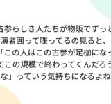 古参らしき人たちが物販でずっと演者囲って喋ってるの見ると、「この人はこの古参が足枷になってこの規模で終わってくんだろうな」っていう気持ちになるよね