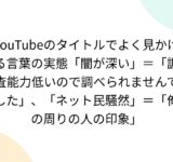 YouTubeのタイトルでよく見かける言葉の実態「闇が深い」=「調査能力低いので調べられませんでした」、「ネット民騒然」=「俺の周りの人の印象」