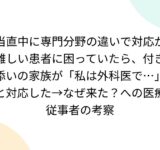 当直中に専門分野の違いで対応が難しい患者に困っていたら、付き添いの家族が「私は外科医で…」と対応した→なぜ来た?への医療従事者の考察