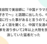 美容院で美容師に『中国ドラマが好きで~』と話題に出したら、中国に行った事があると言うのでよくよく話を聞くと、中国で友達の家を渡り歩いて2年以上大陸を放浪していた猛者だった