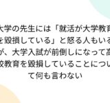 大学の先生には「就活が大学教育を毀損している」と怒る人もいるが、大学入試が前倒しになって高校教育を毀損していることについて何も言わない