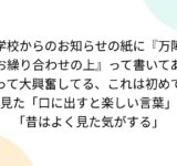 学校からのお知らせの紙に『万障お繰り合わせの上』って書いてあって大興奮してる、これは初めて見た「口に出すと楽しい言葉」「昔はよく見た気がする」