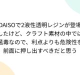 DAISOで2液性透明レジンが登場したけど、クラフト素材の中では猛毒なので、利点よりも危険性を前面に押し出すべきだと思う