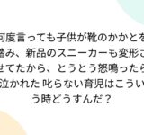 何度言っても子供が靴のかかとを踏み、新品のスニーカーも変形させてたから、とうとう怒鳴ったら泣かれた 叱らない育児はこういう時どうすんだ?