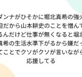 ダンナがひそかに堀北真希の強火担だから山本耕史のことを憎んでるんだけど仕事が無くなると堀北真希の生活水準下がるから嫌だってことでクソがクソが言いながら応援してる