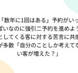 「数年に1回はある」予約がいっぱいなのに強引二予約を進めようとしてくる客に対する苦言に共感が多数「自分のことしか考えてない客が増えた?」