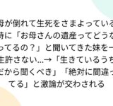 母が倒れて生死をさまよっている時に「お母さんの遺産ってどうなってるの?」と聞いてきた妹を一生許さない…→「生きているうちだから聞くべき」「絶対に間違ってる」と激論が交わされる