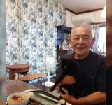 母から「サンマが安かった」と送られてきた写真には父と猫が一緒に写っていた→サンマを狙う猫の目がマジすぎた「猫も秋を堪能したい」