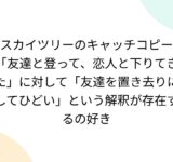 スカイツリーのキャッチコピー「友達と登って、恋人と下りてきた」に対して「友達を置き去りにしてひどい」という解釈が存在するの好き