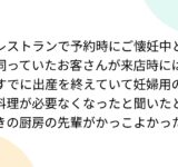 レストランで予約時にご懐妊中と伺っていたお客さんが来店時にはすでに出産を終えていて妊婦用の料理が必要なくなったと聞いたときの厨房の先輩がかっこよかった