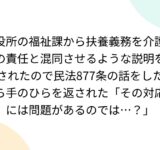 役所の福祉課から扶養義務を介護の責任と混同させるような説明をされたので民法877条の話をしたら手のひらを返された「その対応には問題があるのでは…?」