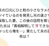 夫の口元にひと粒の小さなラメがツイているのを発見し光の速さで採取した妻、この後の詰問を察した夫は「真相解明して‼️できなかったら俺を…」果たして夫の運命は?