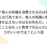 『他人の知識を浪費させるのは失礼な行為であり、他人の知識に敬意を払えないのはなお失礼だ』ってことはもっと教育で仕込んだほうがいいのでは?という話