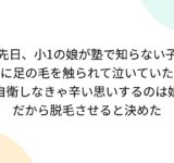 先日、小1の娘が塾で知らない子に足の毛を触られて泣いていた 自衛しなきゃ辛い思いするのは娘だから脱毛させると決めた
