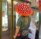 この格好で電車乗ってたら「ベニテングタケ!」「毒キノコ!」と声をかけられまくった→それより醤油差しのバッグが気になる人が続出「焼いて食べる気満々じゃん」